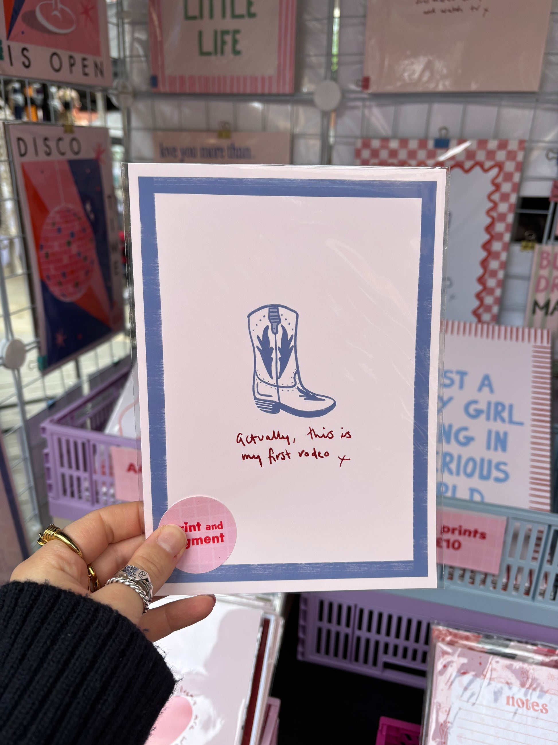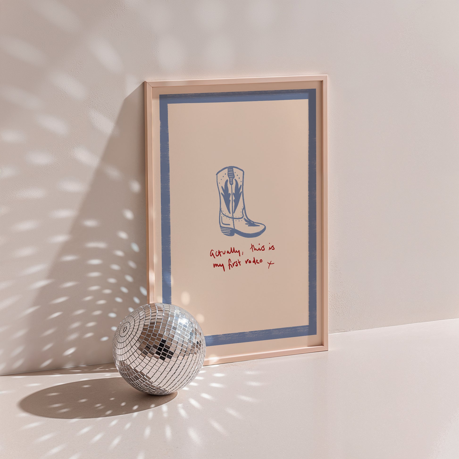 Bring a touch of western style to your space with our hand-drawn Actually, This Is My First Rodeo cowboy print. Perfect for adding yeehaw! to your home or gifting to lovers of the wild west.