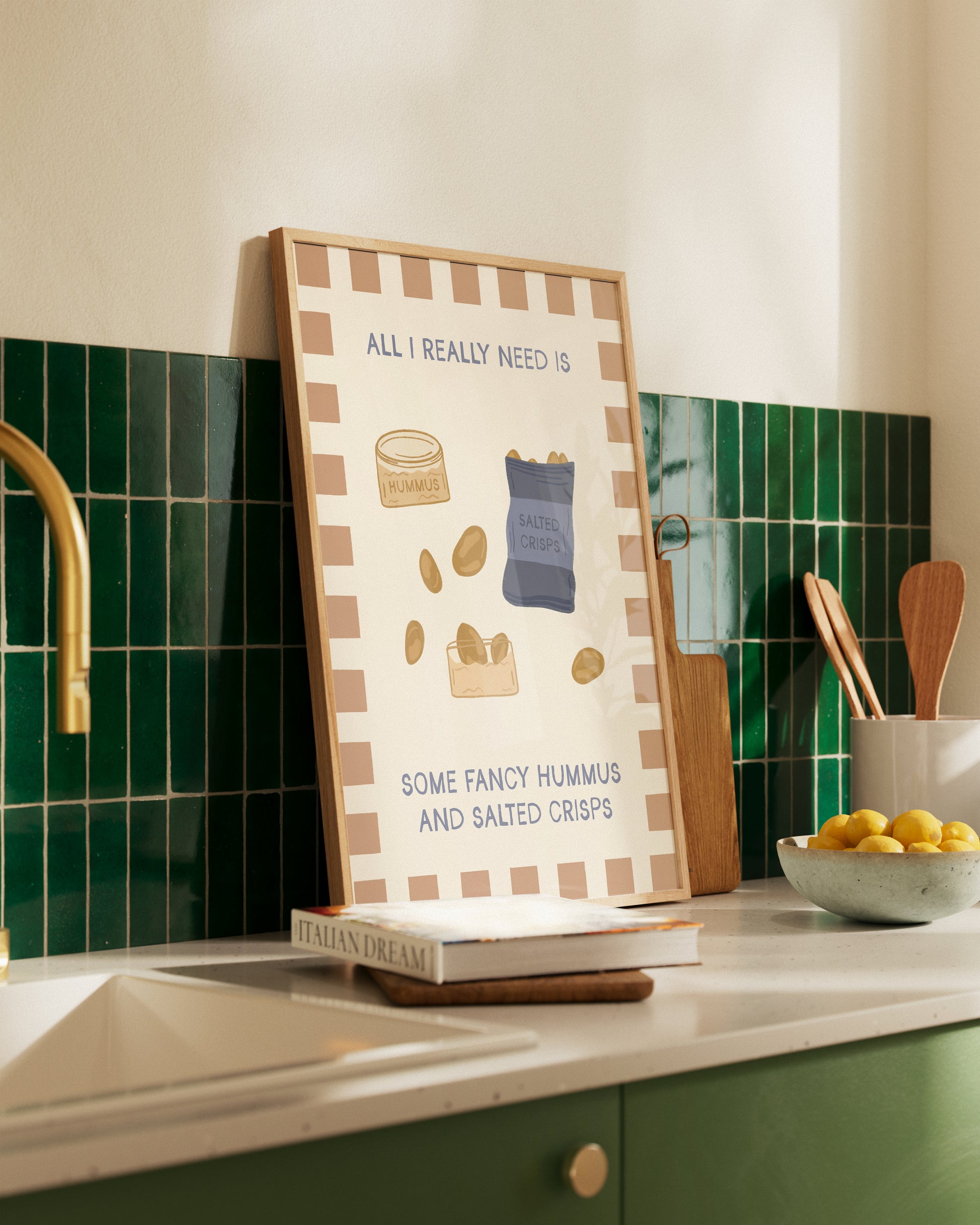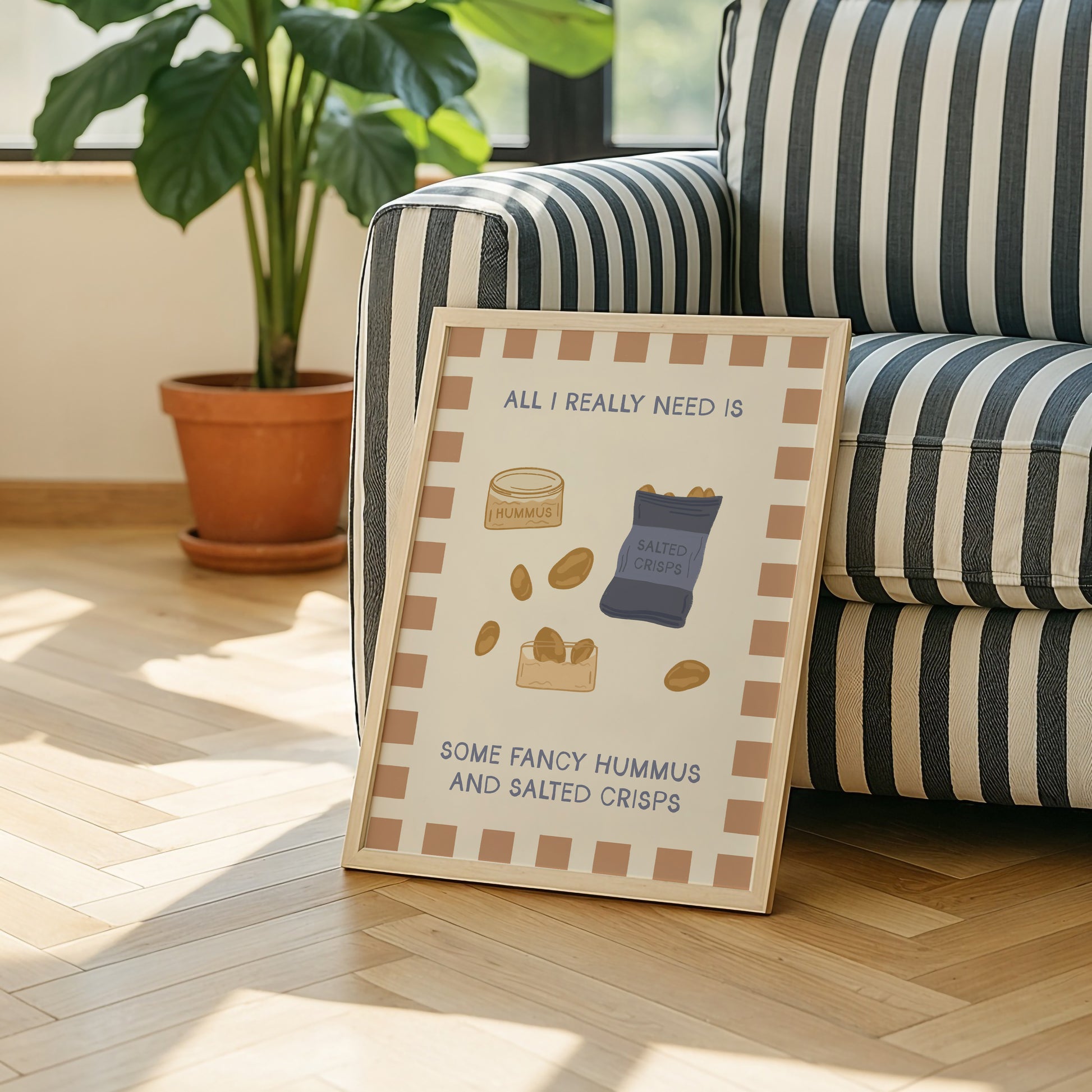 All I Really Need Is Some Fancy Hummus and Salted Crisps Print