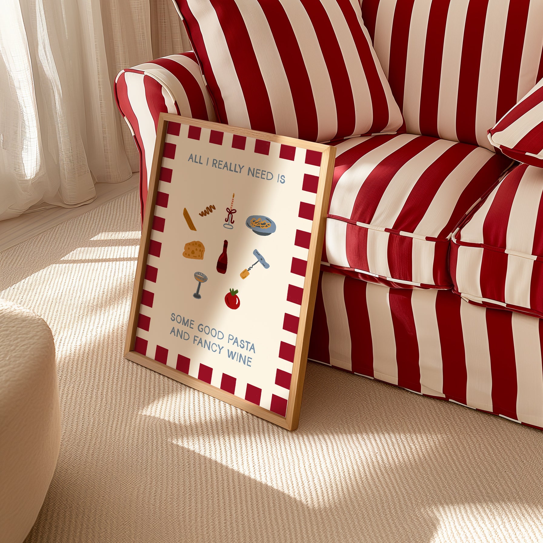 All I Really Need Is Some Good Pasta and Fancy Wine Print