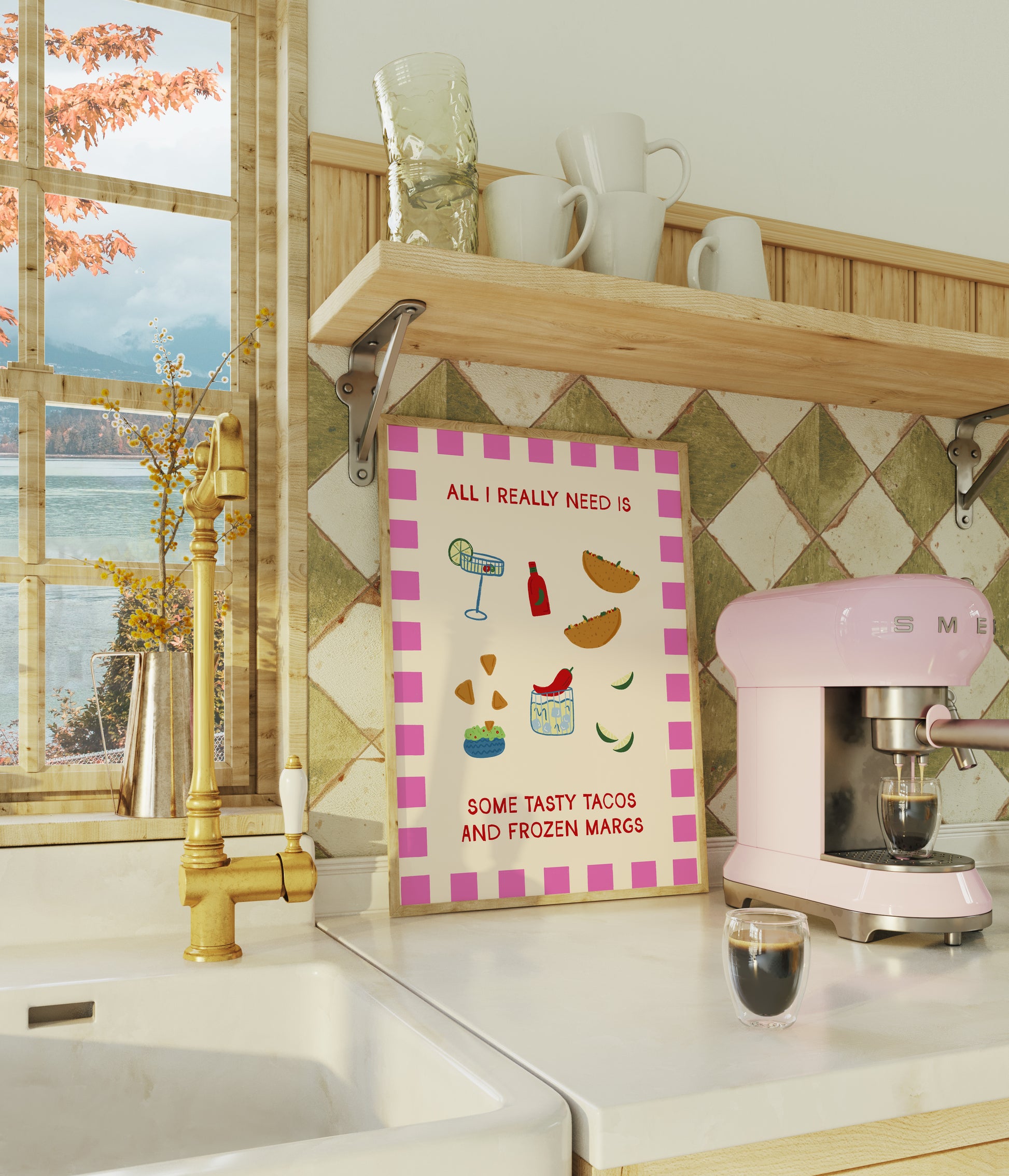 All I Really Need Is Some Tasty Tacos and Frozen Margs Print
