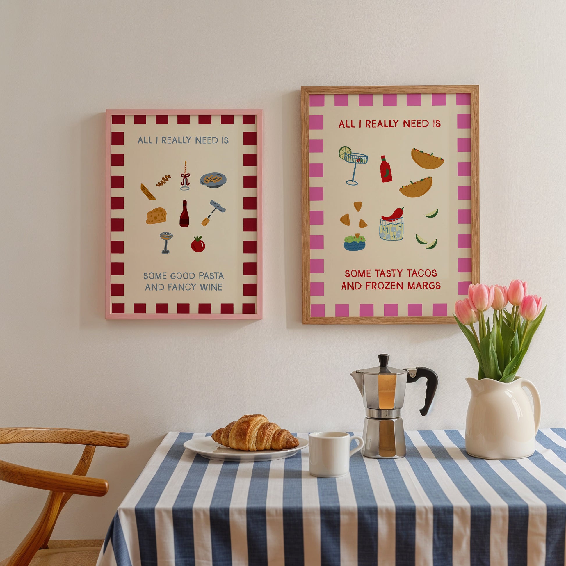 Tasty tacos and frozen margs; the simple things in life that keep us going. This print is perfect for any taco and/or margarita lovers, serving as a reminder that all they need to be happy in life is a mexican tortilla and frozen cocktail, perfect!!