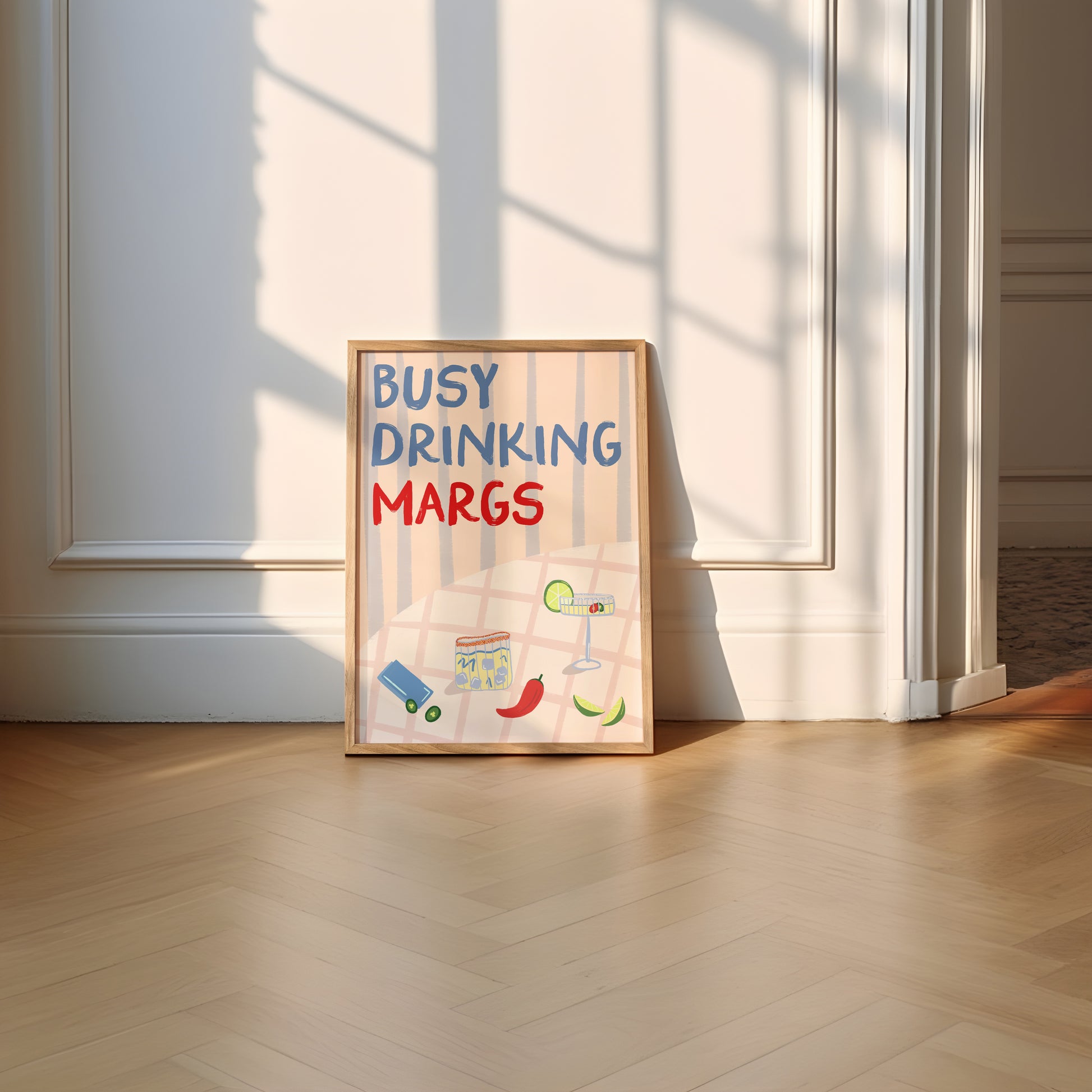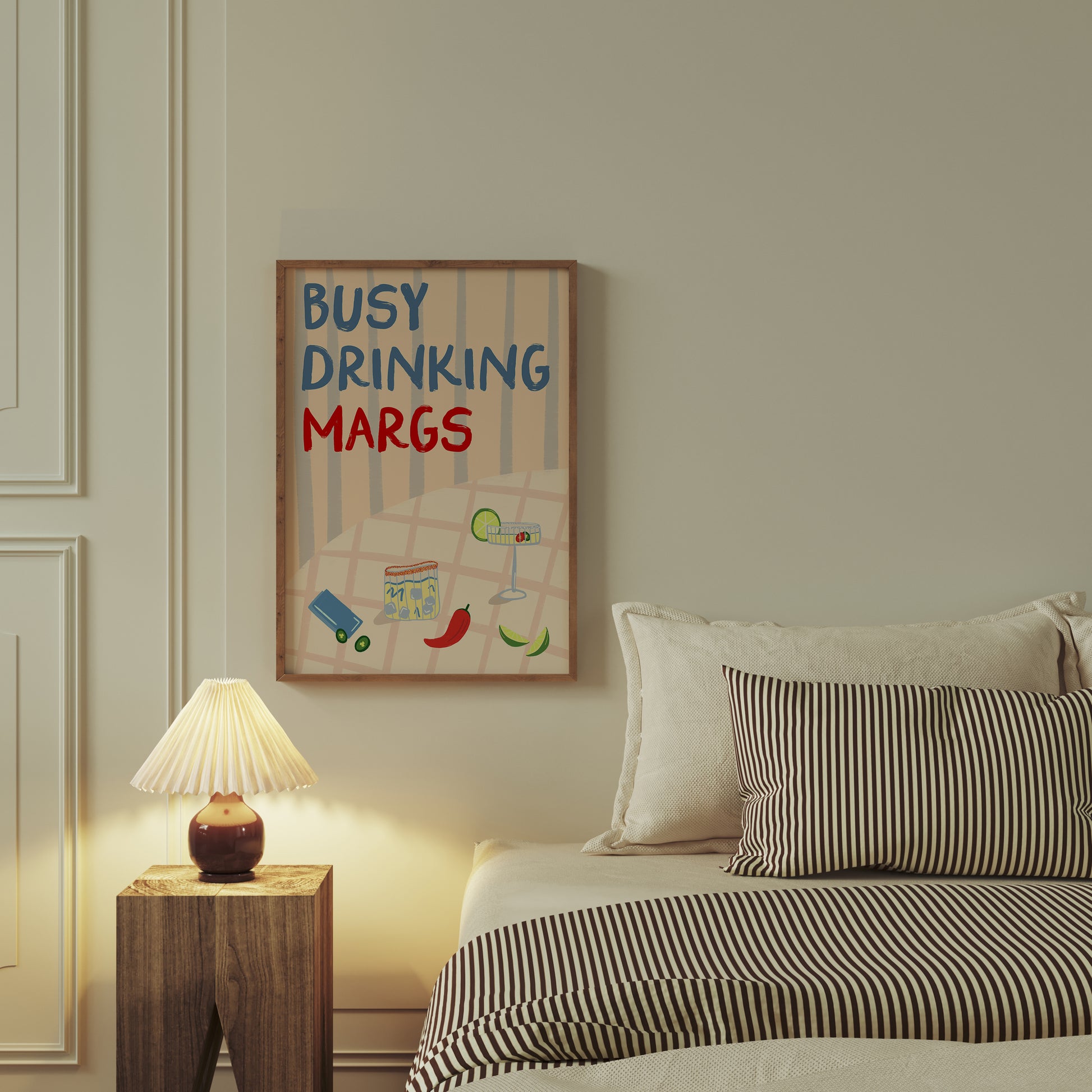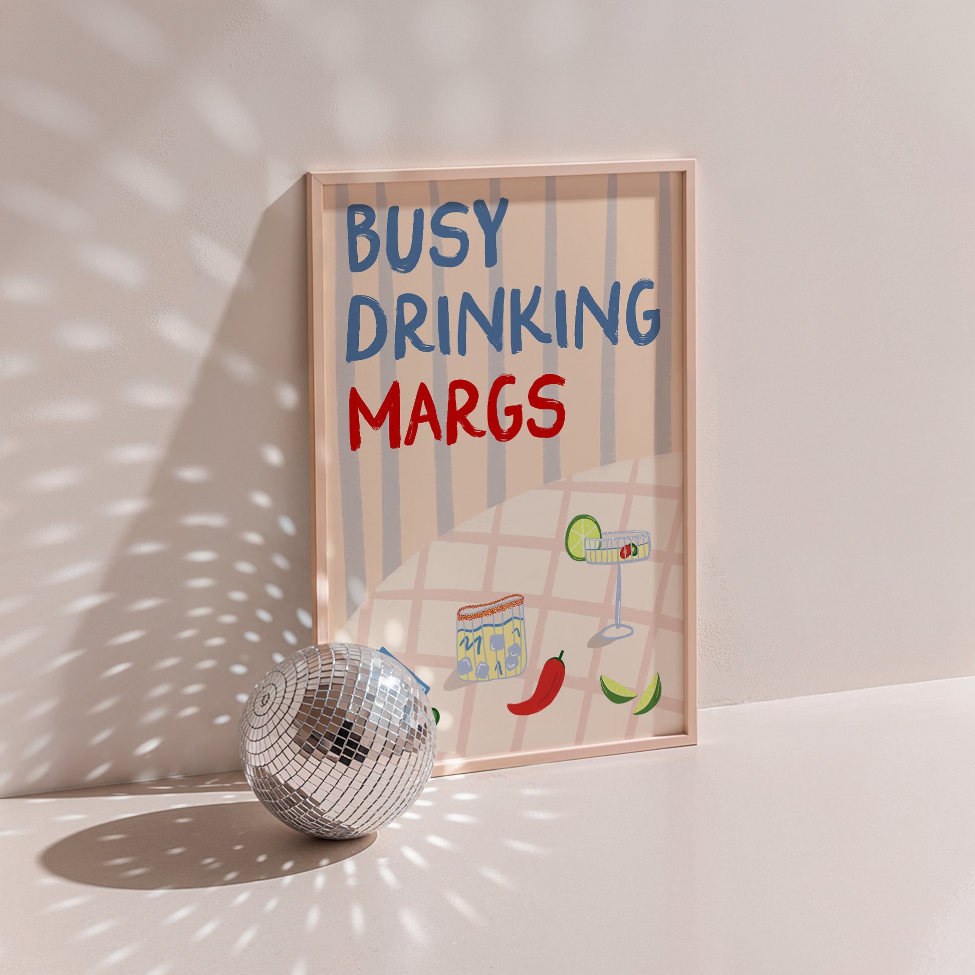 Elevate your home bar with our Busy Drinking Margs Print, designed for cocktail lovers who crave the kick of a spicy margarita. Featuring vibrant blue and red hand drawn cocktails, this print adds a bold splash of colour to your kitchen, hallway or bar cart. Perfect for gatherings with your girlies or brightening up your bar area, it’s a playful nod to good times and great drinks.