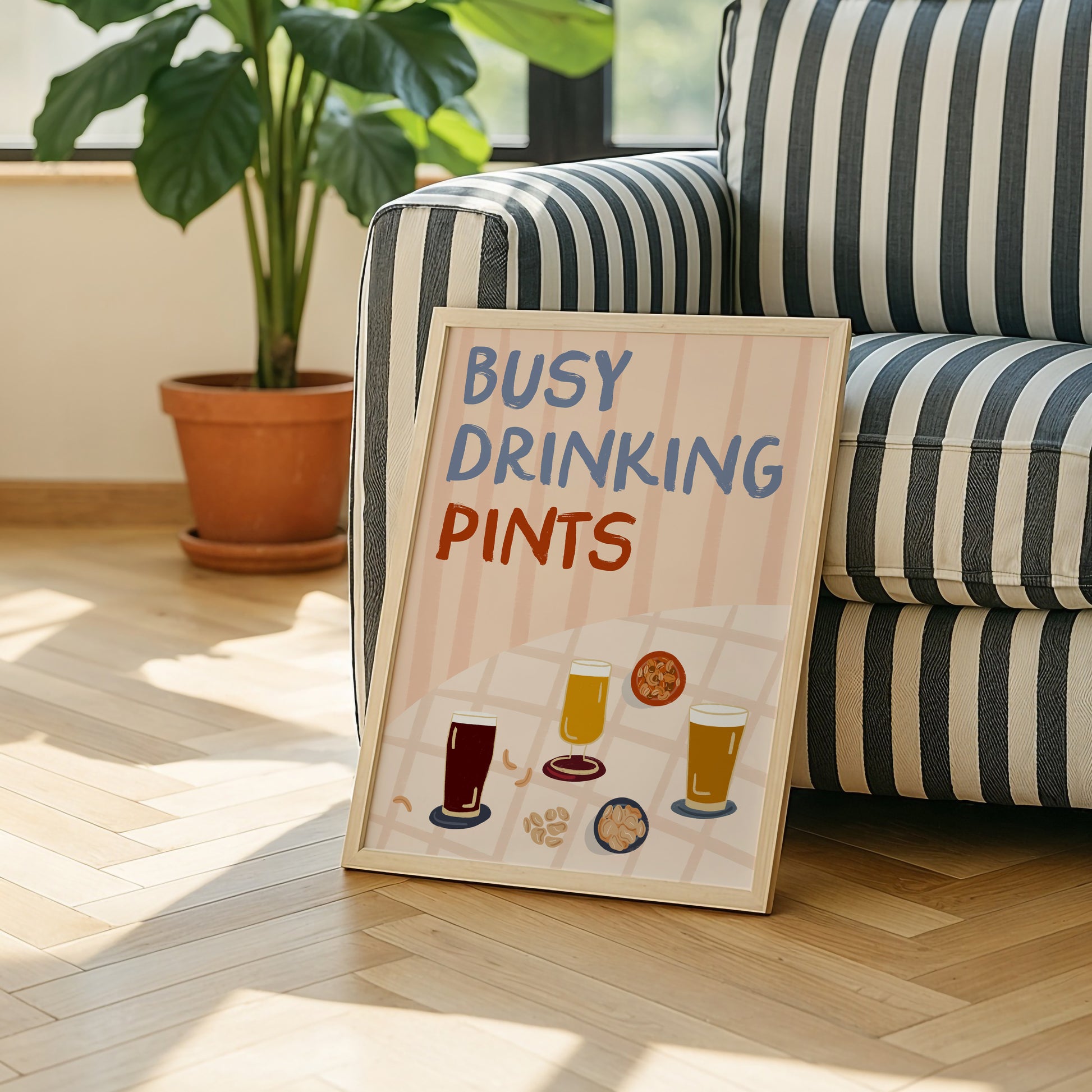 Capture the lively spirit of a classic pub garden with our hand drawn Busy Drinking Pints Print. Perfect for beer lovers, it brings the warm, social atmosphere of friends enjoying pints together right into your home. Celebrating the joy of good company and great beer.