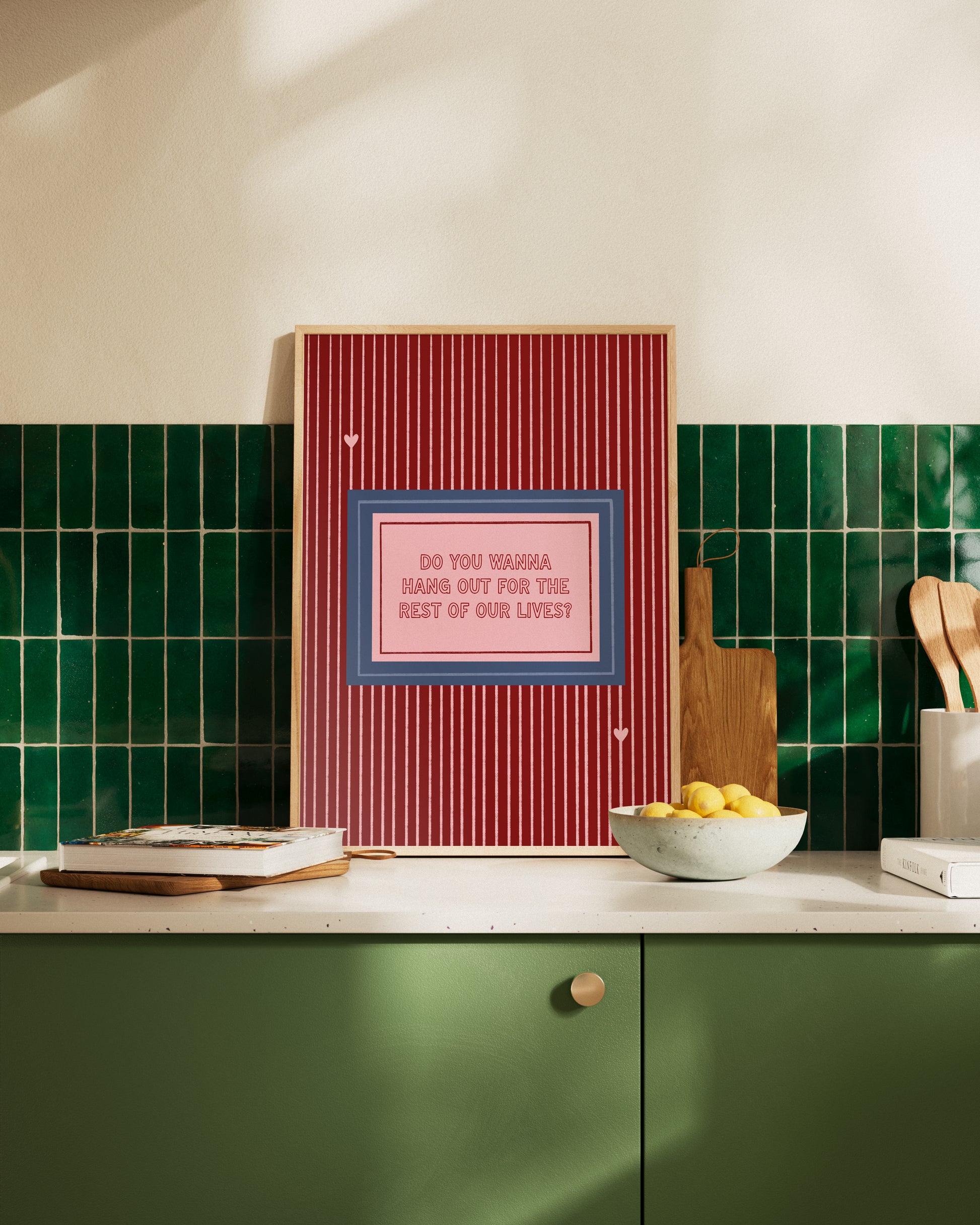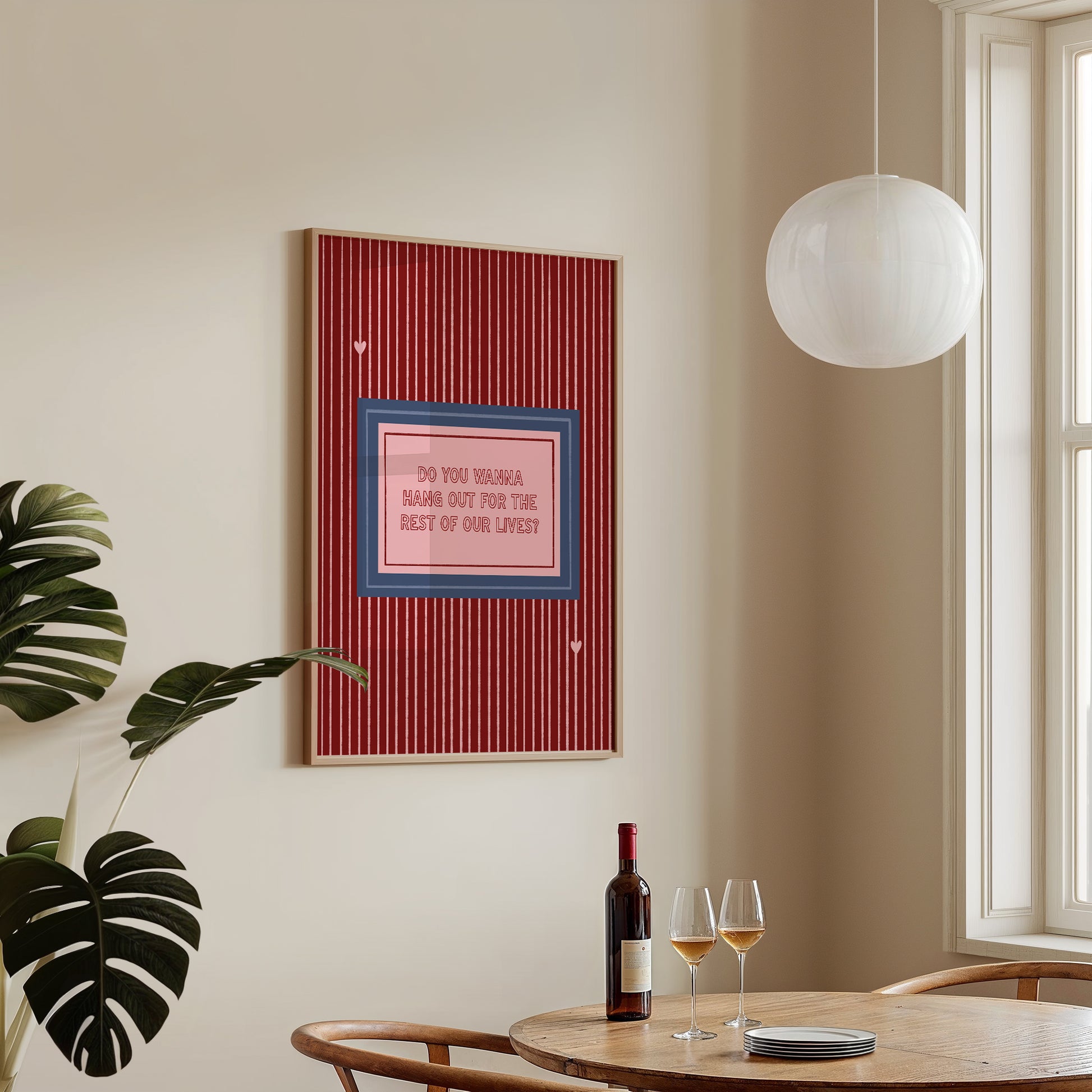 Our Do You Wanna Hang Out For The Rest Of Our Lives? print captures that playful love between couples. Behind everything it really is just two besties hanging out for the rest of their lives and that's a beautiful sentiment to have.