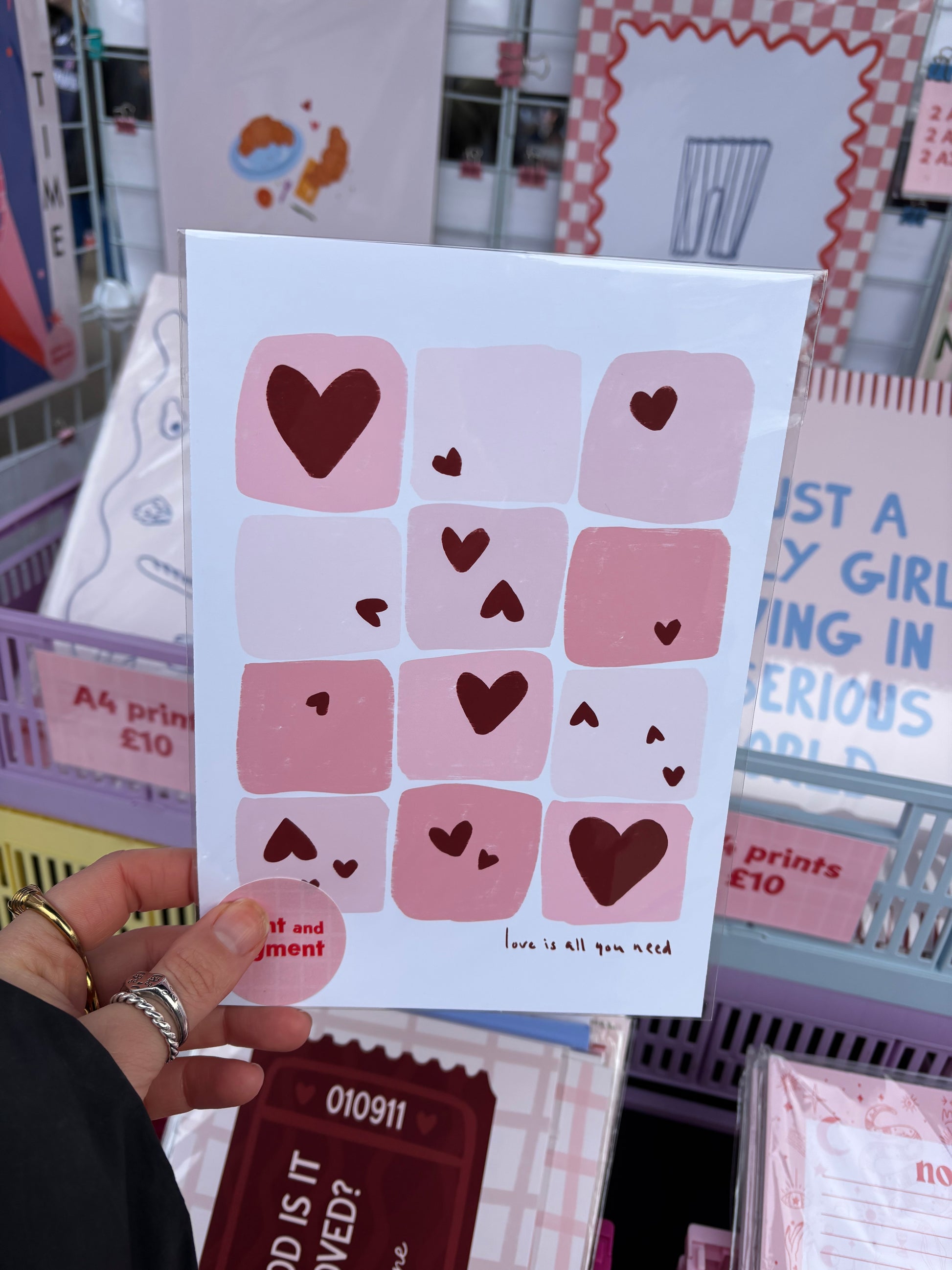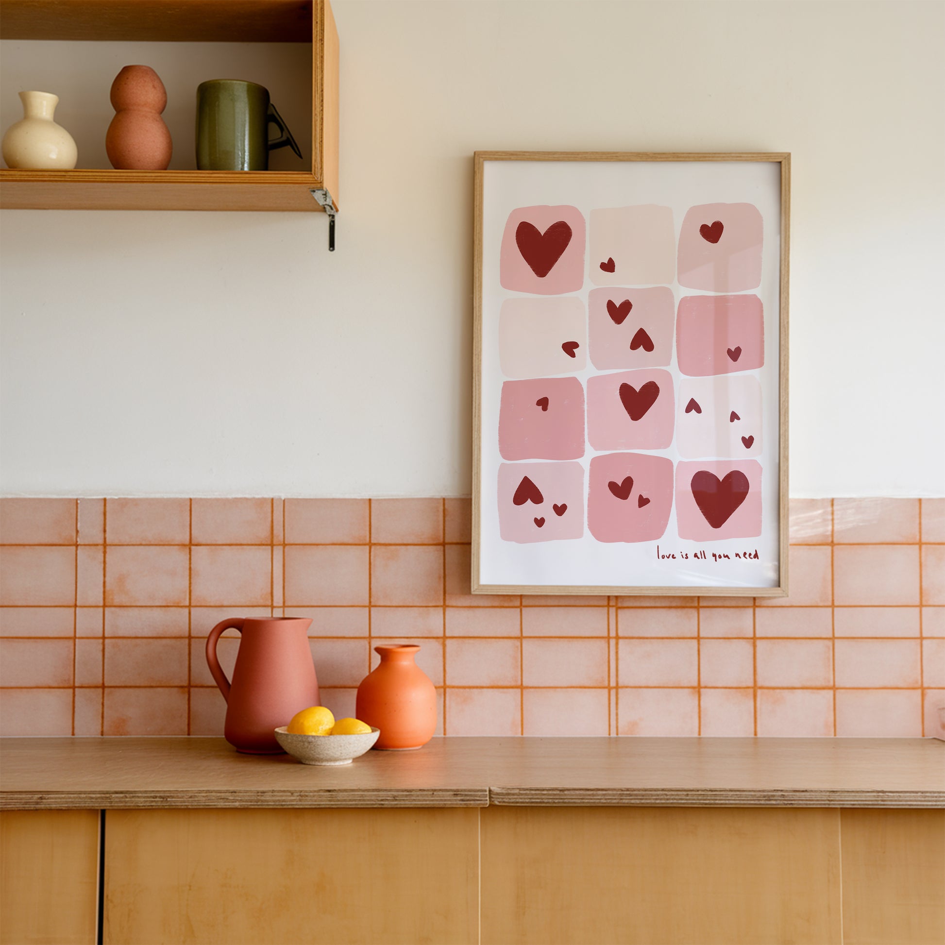 Transform your space with our hand drawn Love Is All You Need print that serves as your daily dose of inspiration. A reminder that love can get you through the tough times. Perfect for valentines, an anniversary or a wedding present to remind people that love really is all you need.