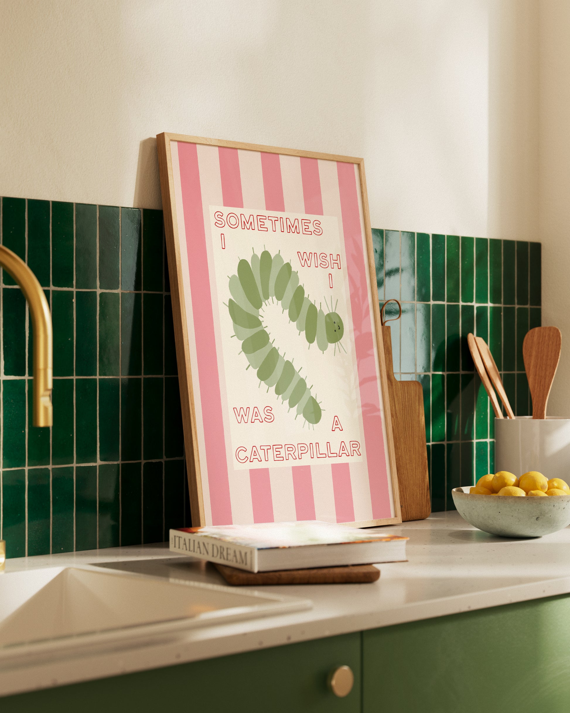 We all know you've asked the question, would you still love me if I was a caterpillar? But how about sometimes just wishing you were a caterpillar, without a care in the world? Embrace your colourful side with the Sometimes I Wish I Was a Caterpillar Stripey Print, bursting with vibrant stripes and a lovely pink, red and green colour way.